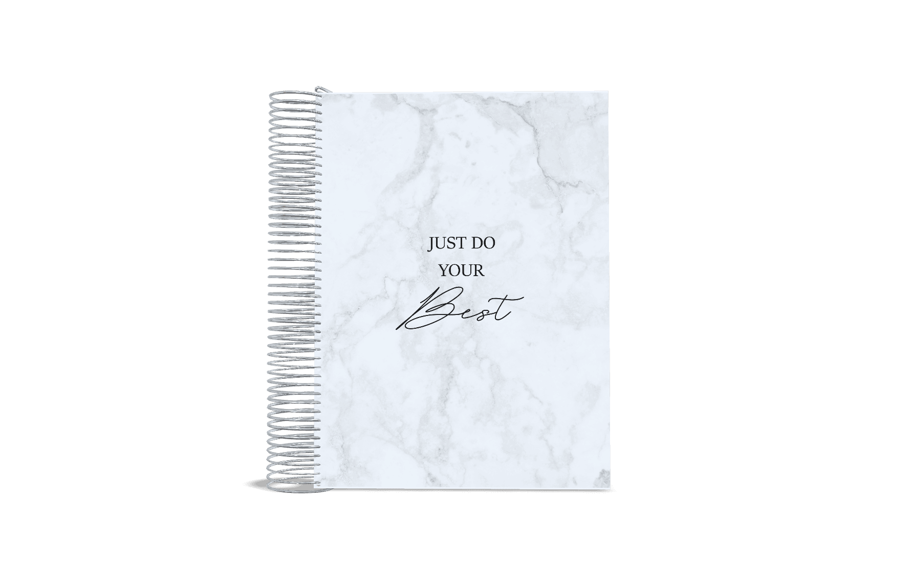 Mármore Clássico: Sofisticação com a frase motivacional "Just Do Your Best" (Faça o seu melhor).